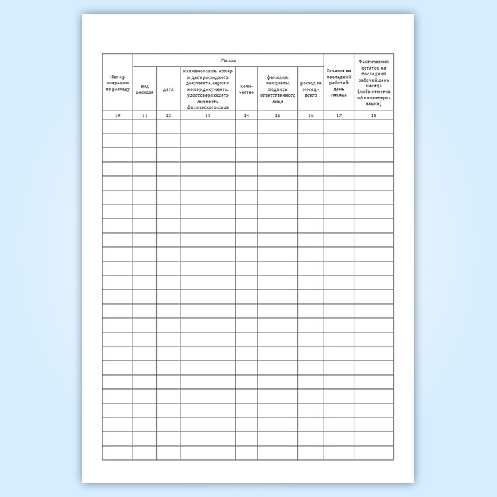 Графы журнала регистрации операций, при которых изменяется количество прекурсоров наркотических средств и психотропных веществ: