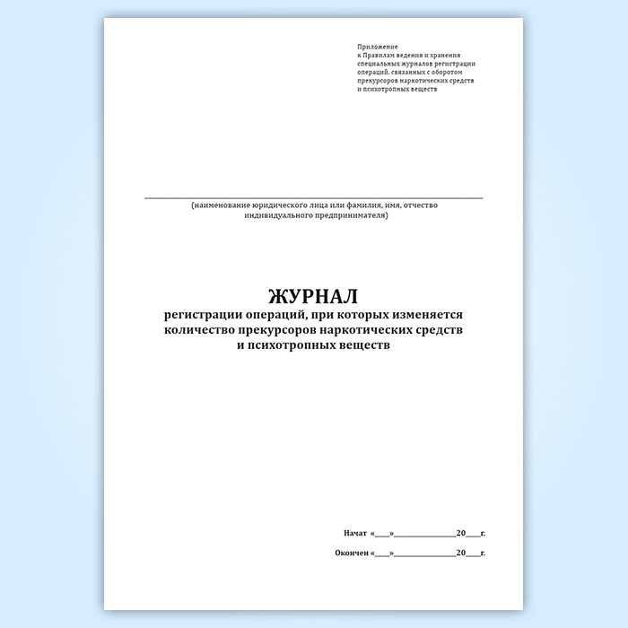 Журнал регистрации операций, при которых изменяется количество прекурсоров наркотических средств и психотропных веществ