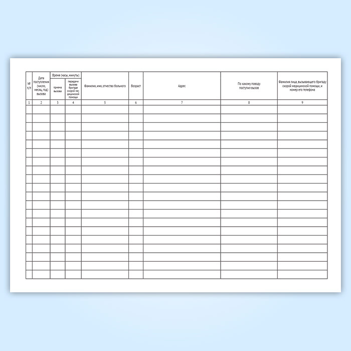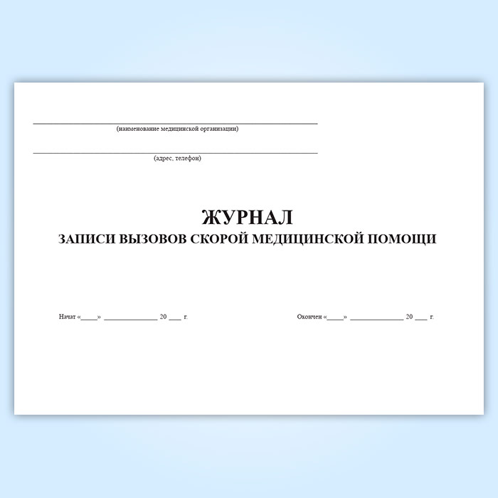 Журнал записи вызовов скорой медицинской помощи (Форма109/у)