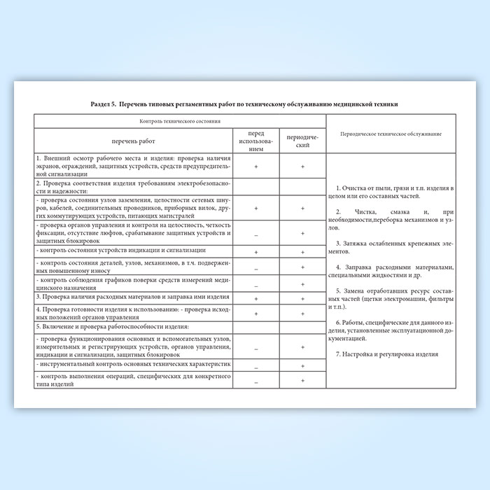 4) перечень типовых регламентных работ по техническому обслуживанию медицинской техники.