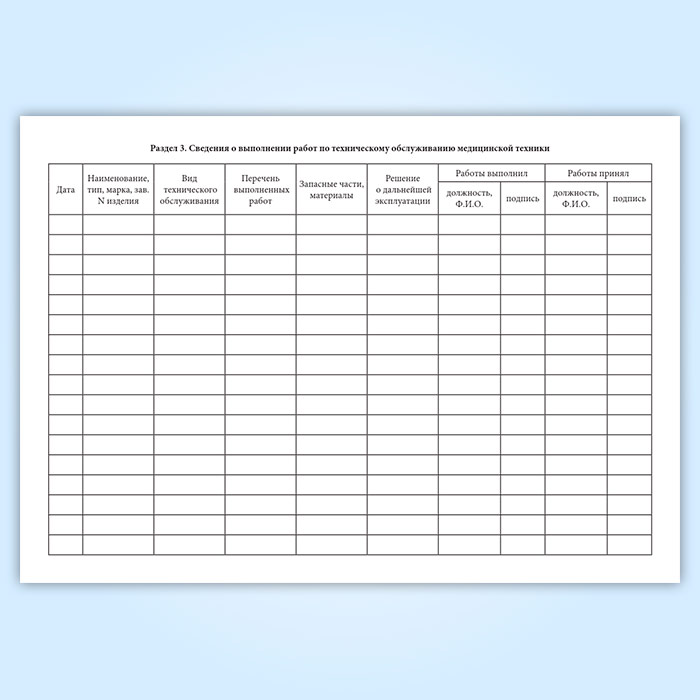 3) сведения о выполнении работ по техническому обслуживанию медицинской техники;
