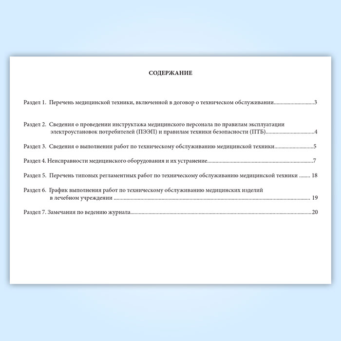 Журнал технического обслуживания медицинской техники должен содержать следующие разделы: