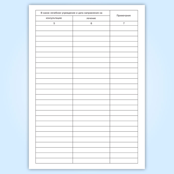 Графы журнала учета больных, направленных на лечение в специализированное медицинское учреждение: