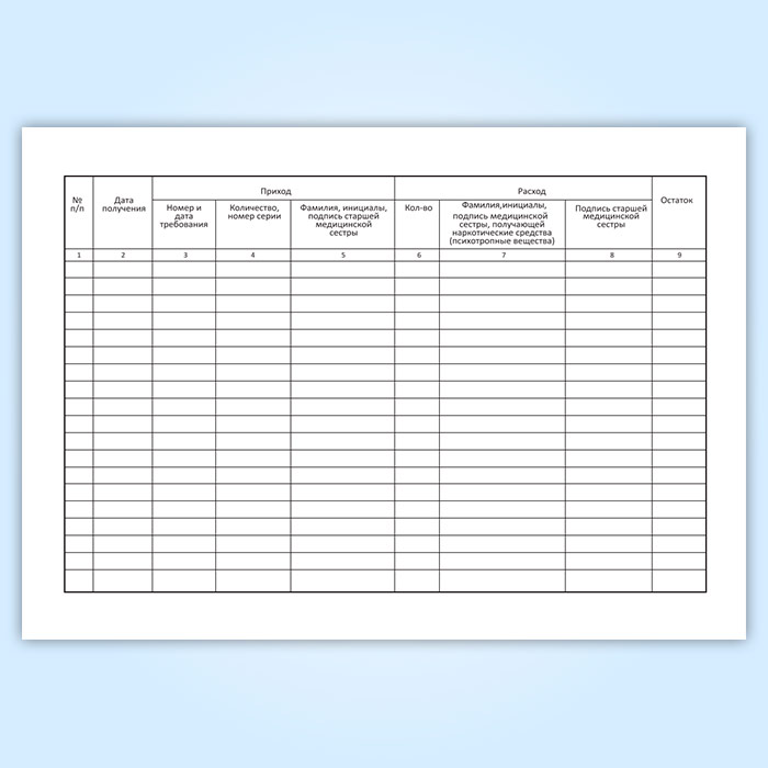 - Фамилия, инициалы, подпись медицинской сестры, получающей наркотические средства (психотропные вещества)