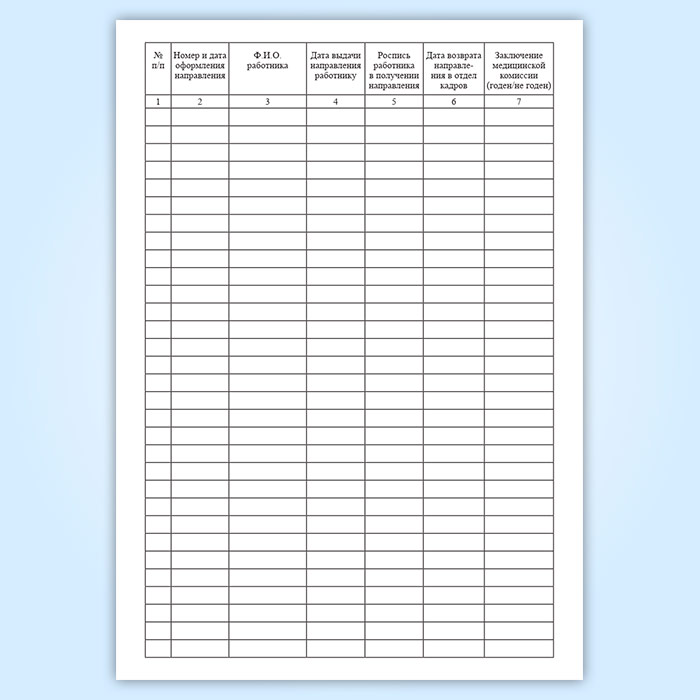 Журнал учета направлений, выдаваемых работникам для прохождения периодического медицинского осмотра