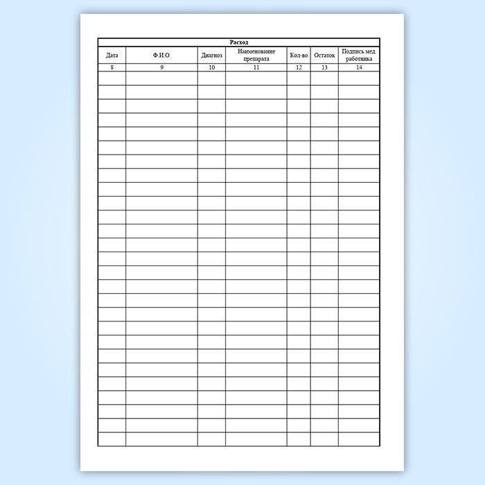 См. также: Журнал учета медикаментов (расход, приход) дорогостоящих, сильнодействующих