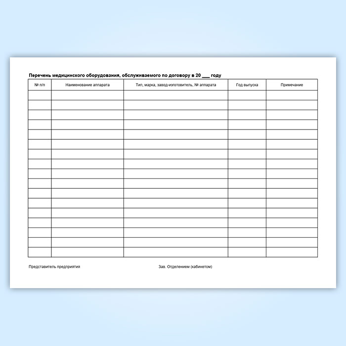 Перечень медицинского оборудования, обслуживаемого по договору в 20 ___ году