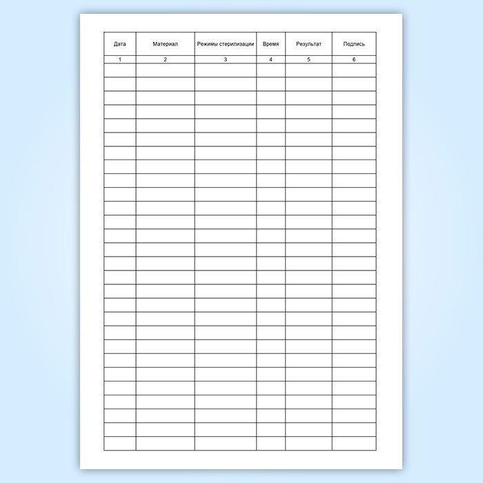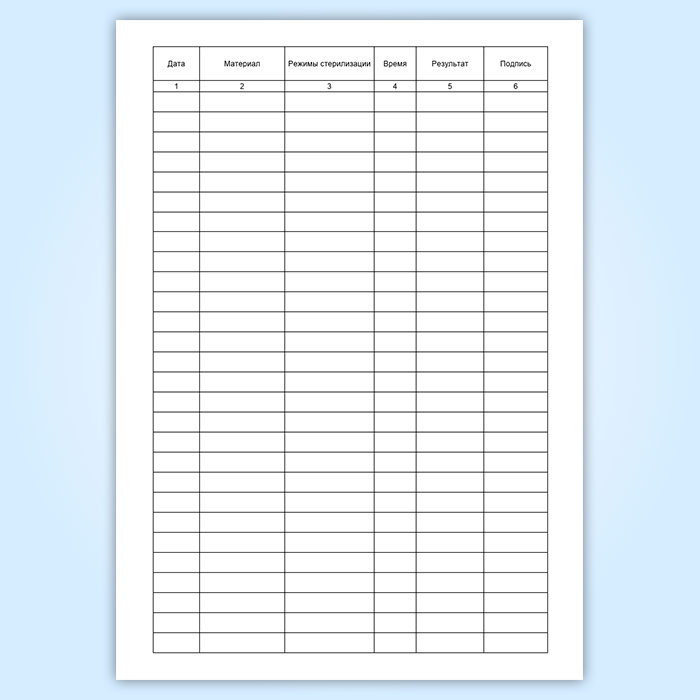 Журнал учета стерилизационных циклов имеет графы (столбцы):