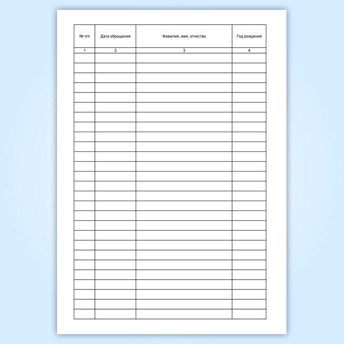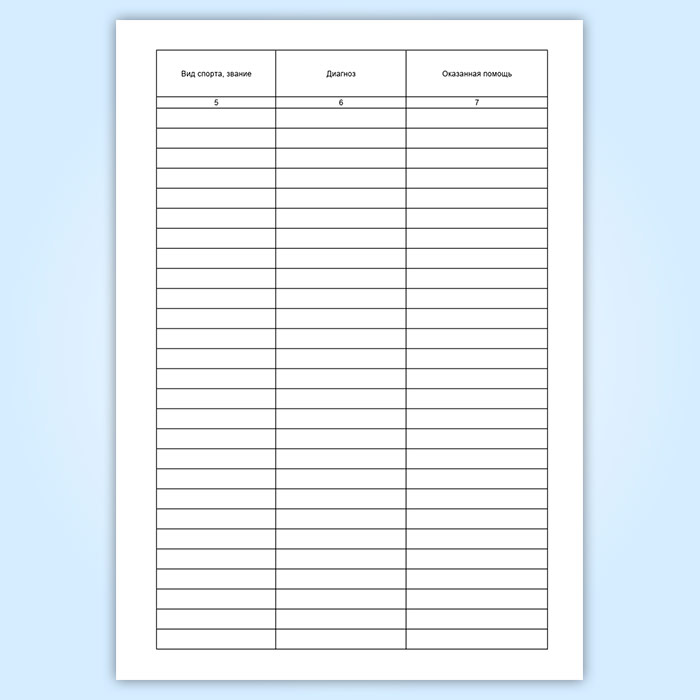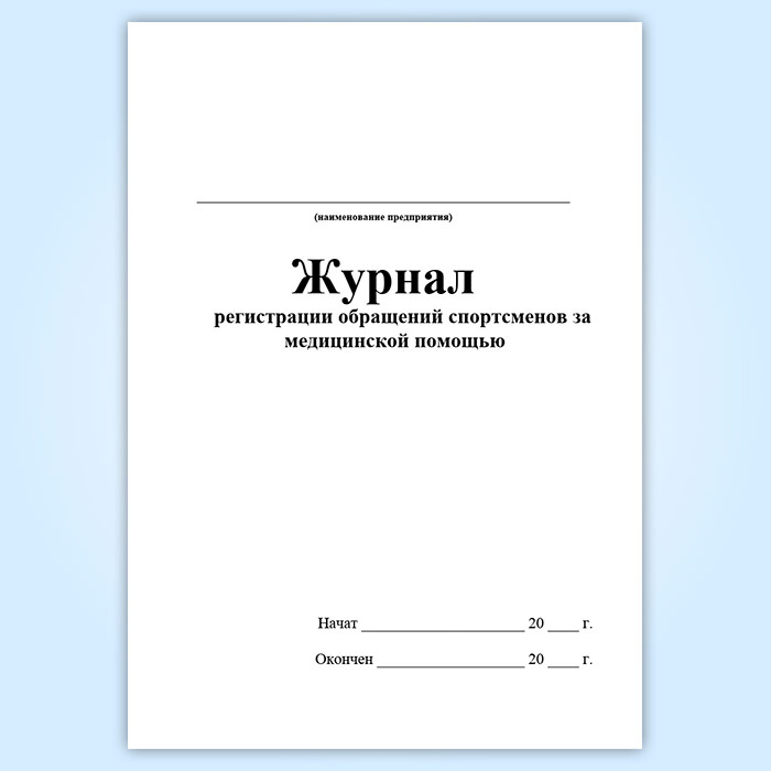 Форма журнала регистрации обращений спортсменов за медицинской помощью соответствует Приложению № 6 к Инструкции о порядке обеспечения сборных команд России по различным видам спорта медикаментами, биологически активными добавками и изделиями медицинского назначения.