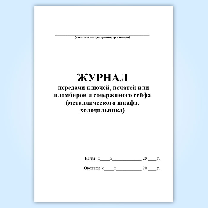 Журнал передачи ключей, печатей или пломбиров и содержимого сейфа (металлического шкафа, холодильника)
