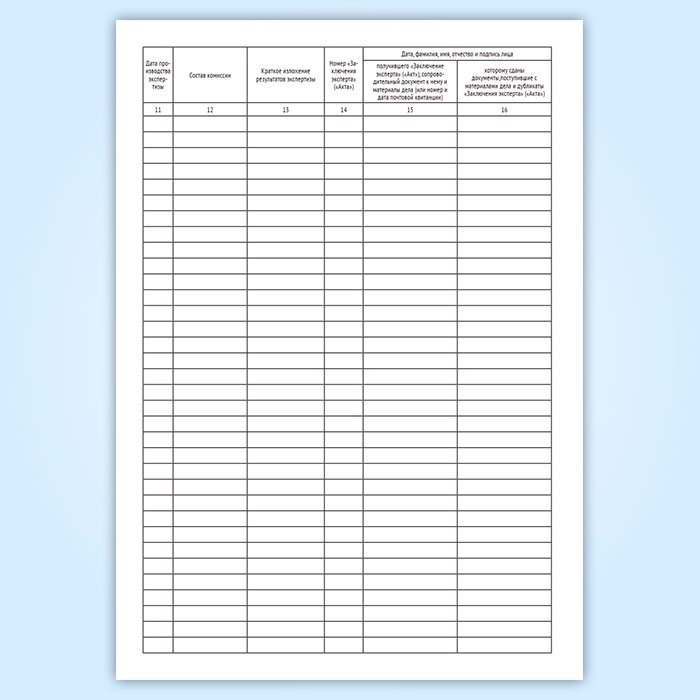 15-16. Дата, фамилия, имя, отчество и подпись лица, получившего "Заключение эксперта" ("Акт"), сопроводительный документ к нему и материалы дела (или номер и дата почтовой квитанции), которому сданы документы, поступившие с материалами дела и дубликаты "Заключения эксперта" ("Акта")