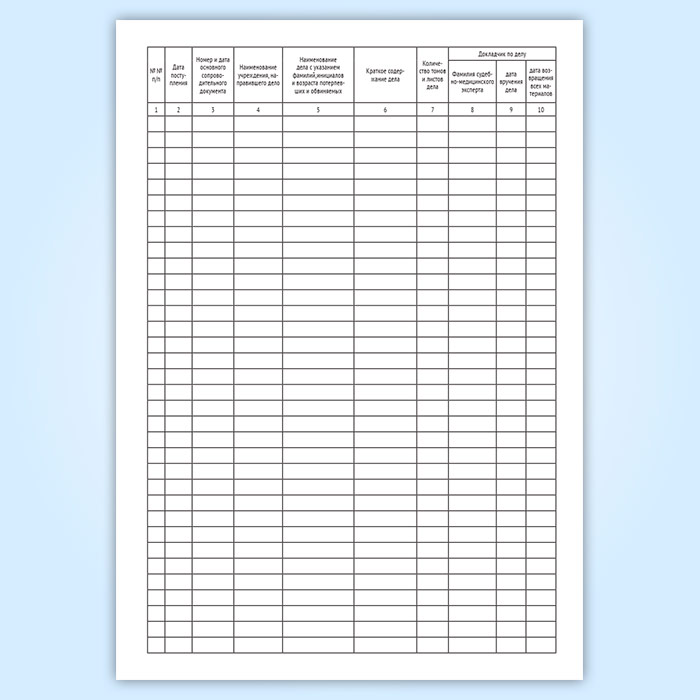 Графы журнала регистрации комиссионных судебно-медицинских экспертиз по материалам следственных и судебных дел по форме 183/у: