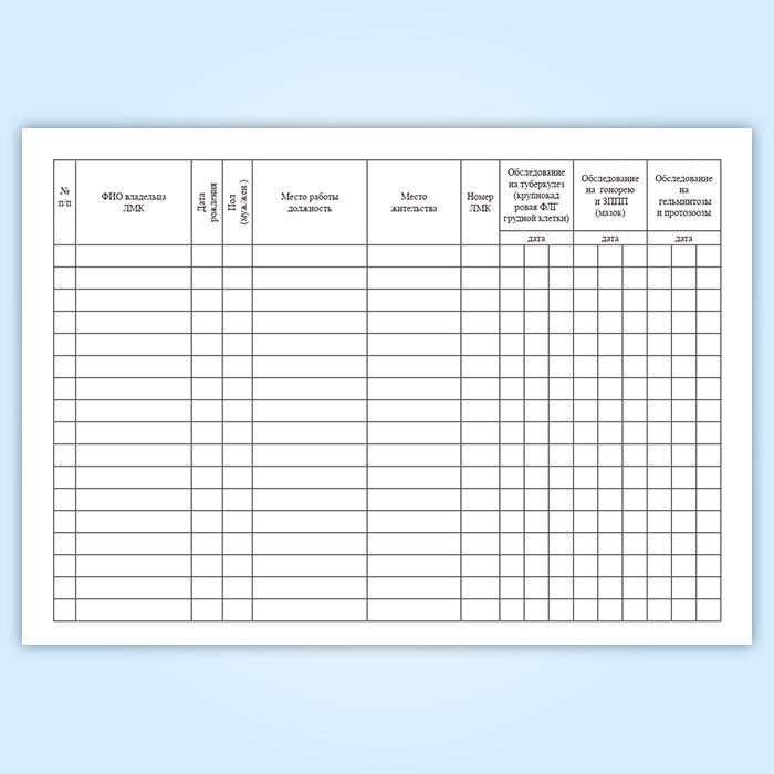 Графы журнал учета результатов медицинских осмотров работников (движения личных медицинских книжек):