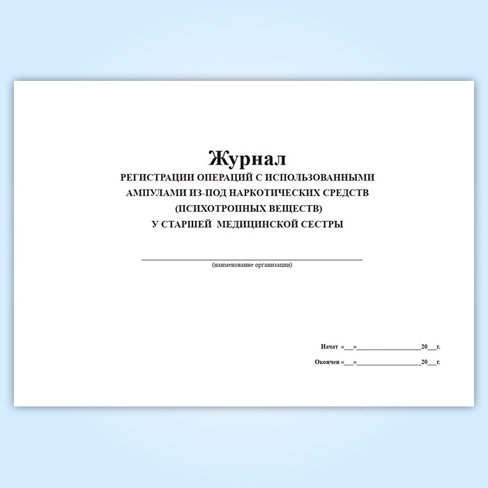 Учет операций с использованными ампулами из-под наркотических средств (психотропных веществ) у старшей медицинской сестры ведут с помощью специального журнала.