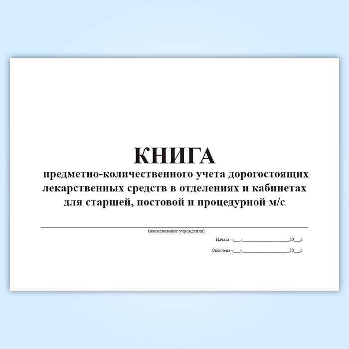 Книга предметно-количественного учета дорогостоящих лекарственных средств в отделениях в кабинетах для старшей, постовой и процедурной м/с