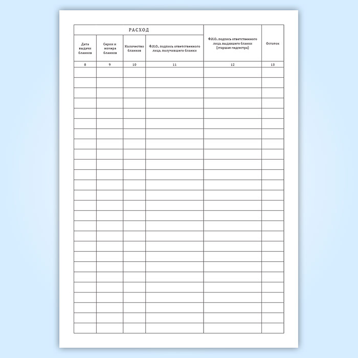 12. Ф.И.О., подпись ответственного лица, выдавшего бланки (старшая медсестра)