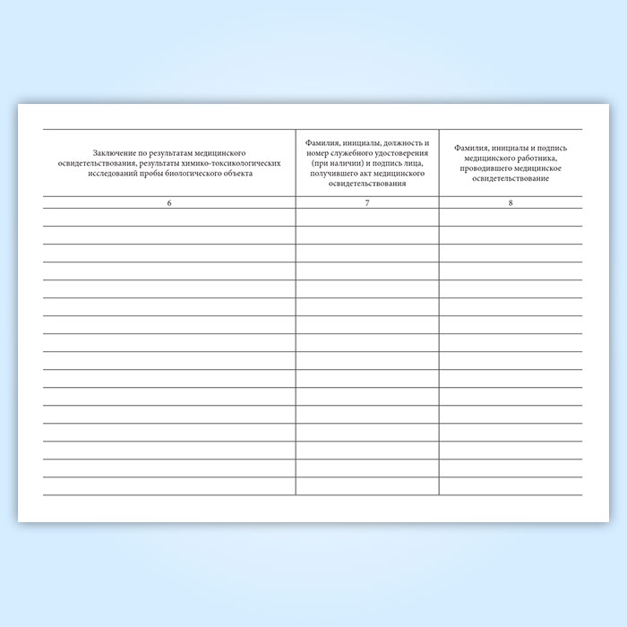 7. При использовании Актов медицинского освидетельствования на состояние опьянения (алкогольного, наркотического или иного токсического), изготовленных типографским способом со сквозной нумерацией, типографский номер Акта также указывается в графе 1 Журнала.