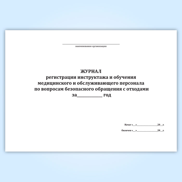 Журнал регистрации инструктажа и обучения медицинского и обслуживающего персонала по вопросам безопасного обращения с отходами