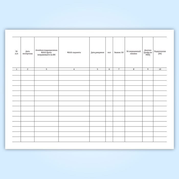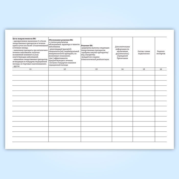 Графы журнала учета работы врачебной комиссии и ее подкомиссий: