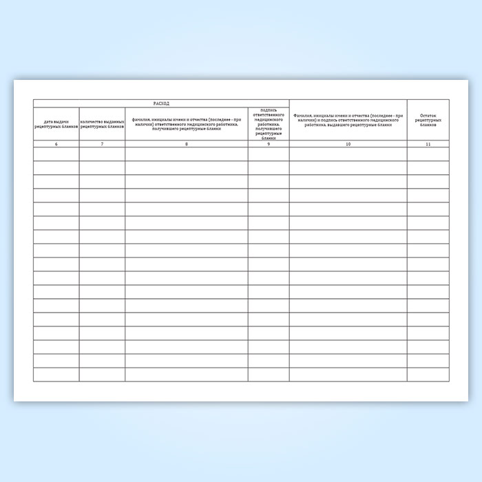 Журнал учета рецептурных бланков формы 107-1/у имеет графы: