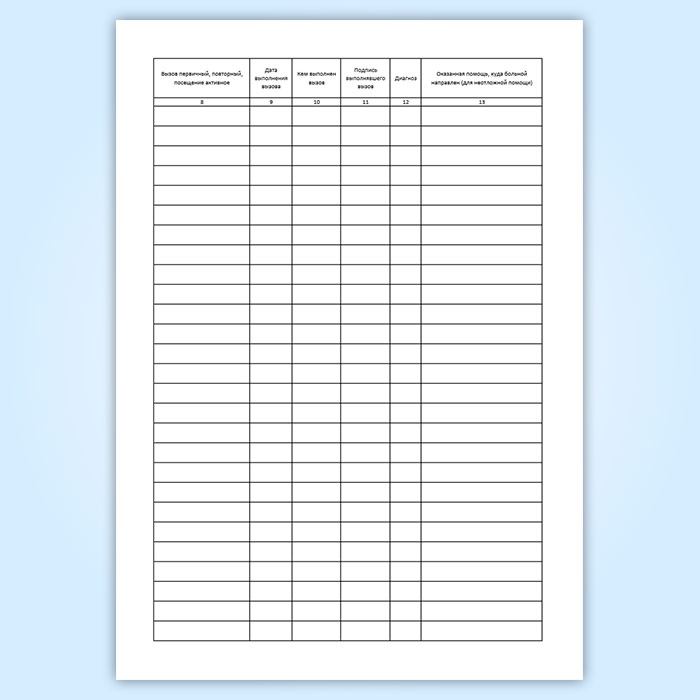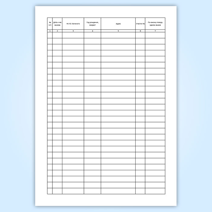 Книга записи вызовов врачей на дом, форма 031/у служит для записи вызовов врачей на дом и контроля их выполнения.