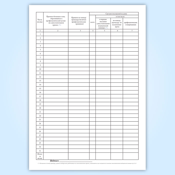 Дневник не заполняется средним медперсоналом лабораторий, рентгеновских, физиотерапевтических, лечебно-физкультурных и других вспомогательных отделений (кабинетов), где учету подлежит число отпущенных процедур (сделанных анализов, исследований и др.).