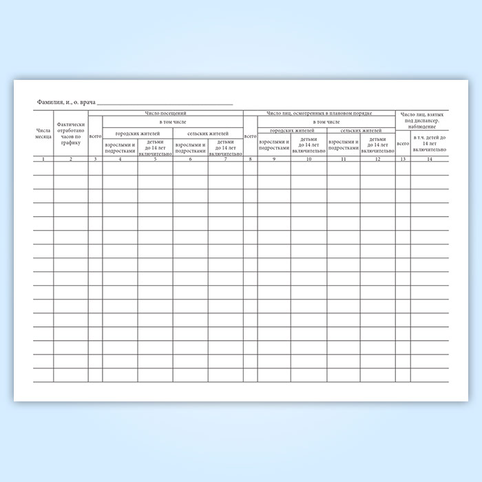 В графе 3 записывается общее число посещений, сделанных к врачу за рабочий день, т.е. общее число лиц, осмотренных врачом (кроме лиц, осмотренных в плановом порядке), с выделением в графы 4-7 посещений, сделанных городскими и сельскими жителями, взрослыми и подростками (15 лет и старше) и детьми (0-14 лет включительно).