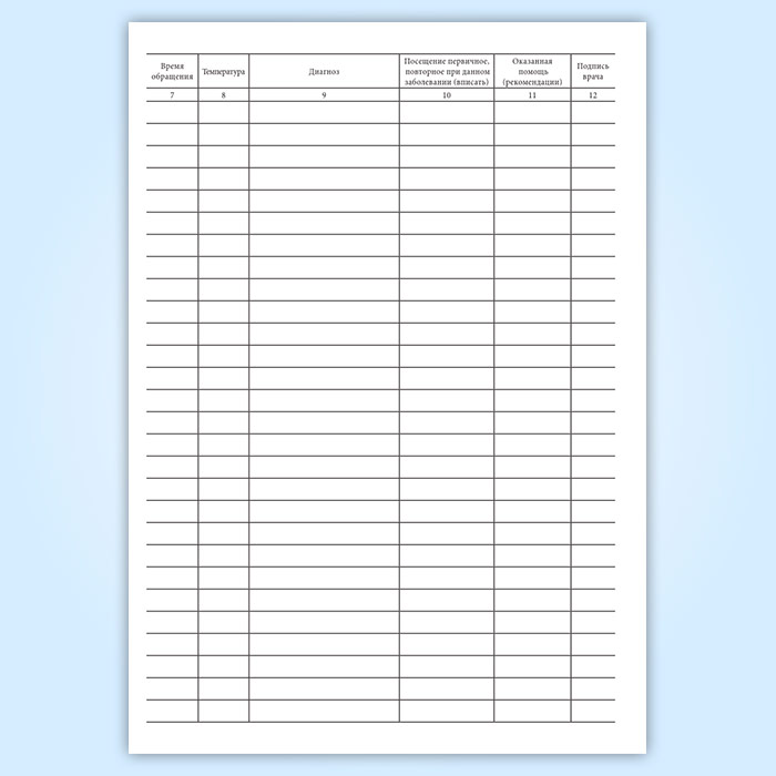 Журнал регистрации посещений изолятора детской поликлиники, отделения поликлиники (форма 059/У)
