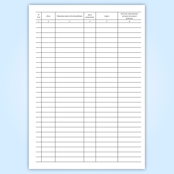 Журнал регистрации посещений изолятора детской поликлиники, отделения поликлиники (Форма 059/У) имеет графы: