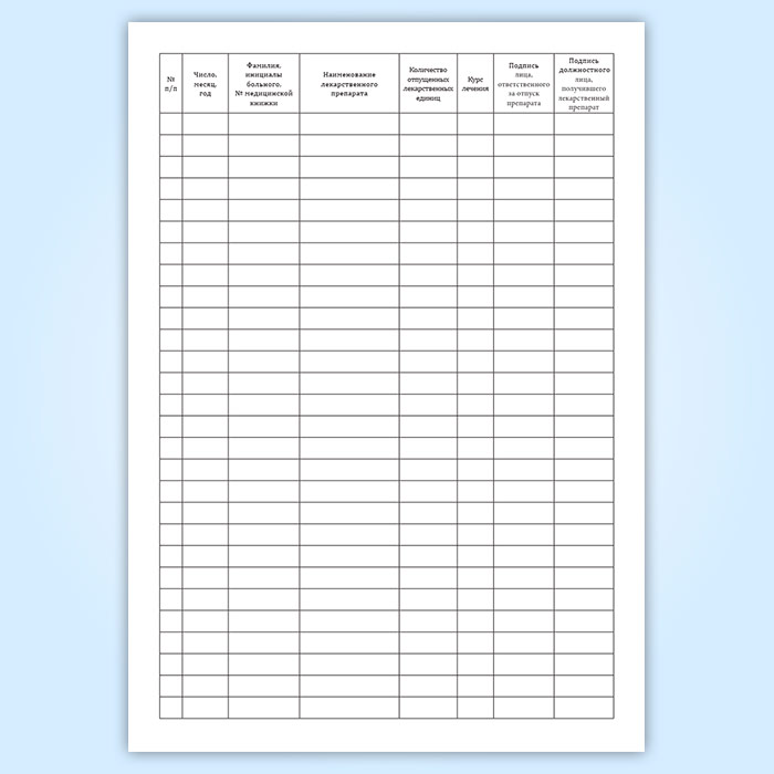 Нейролептики подлежат строгому контролю, поэтому для учета выдачи препаратов используют журнал, где фиксируется количество отпущенных лекарственных единиц с подписью лица, ответственного за отпуск.
