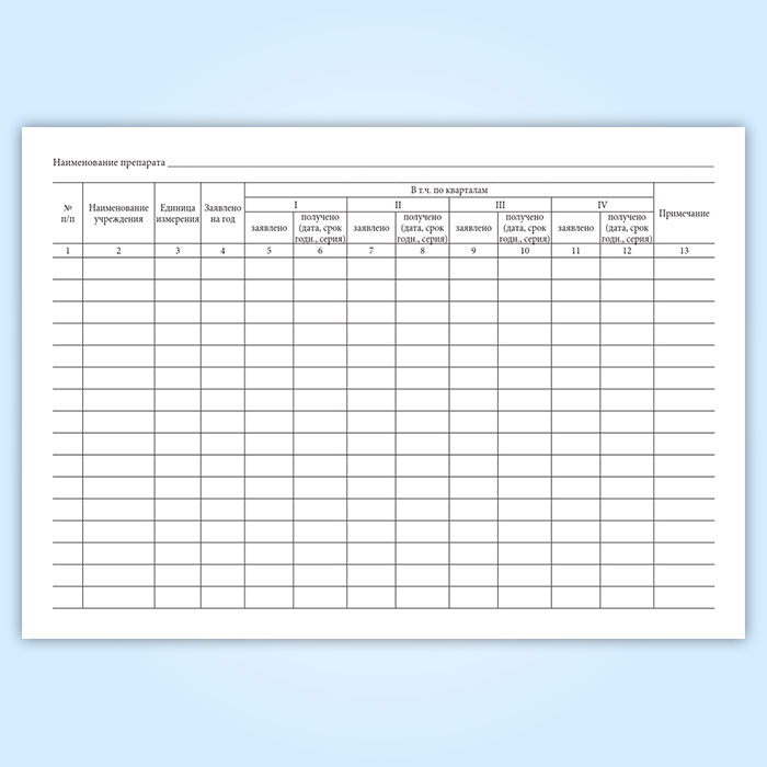 - 3 (заявлено; получено (дата, срок годн., серия)