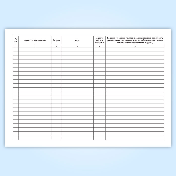 Журнал заполняется врачом (или медицинской сестрой с ним работающей) в инфекционных кабинетах всех лечебно-профилактических учреждений, имеющих их в составе поликлиники (поликлинического отделения больницы).