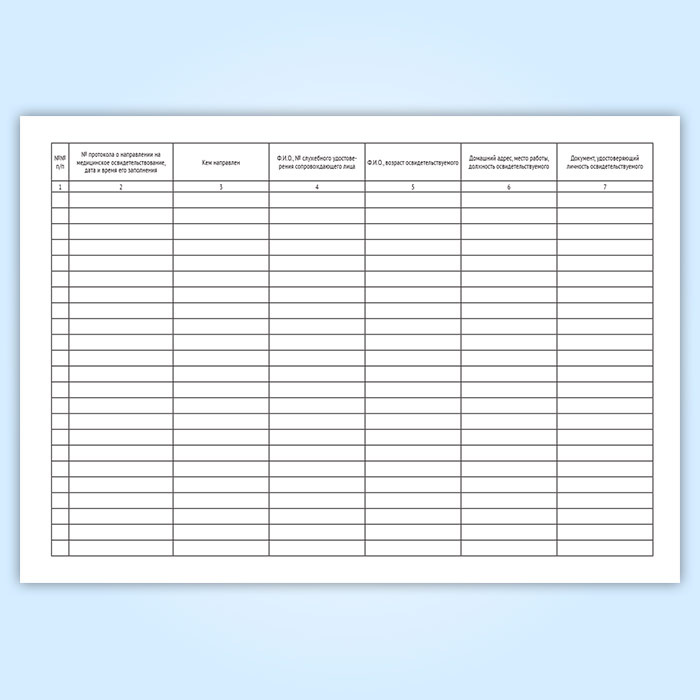 См. также: Журнал регистрации медицинских освидетельствований на состояние опьянения (алкогольного, наркотического или иного токсического)