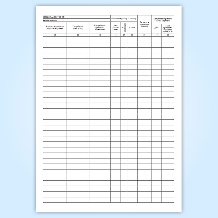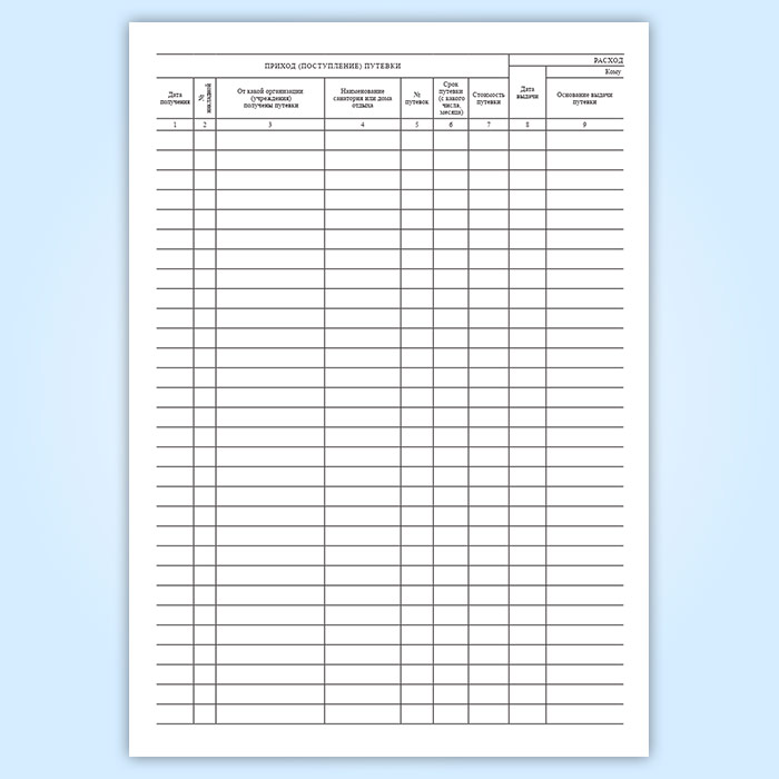 Журнал по учету путевок в дома отдыха и санатории