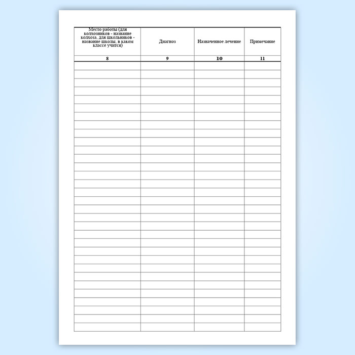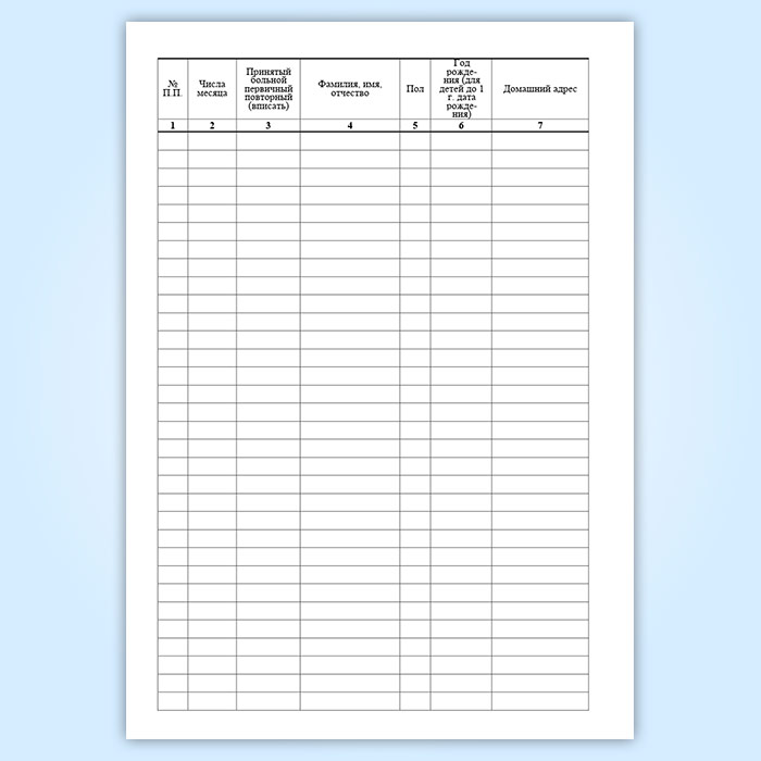 Журнал регистрации амбулаторных больных ведется на фельдшерско-акушерских пунктах (если на пунктах не ведется медицинская карта амбулаторного больного ф. N 025/у), врачебных и фельдшерских здравпунктах, служит для записи всех, обращающихся к персоналу пункта, больных, независимо от повода обращения.