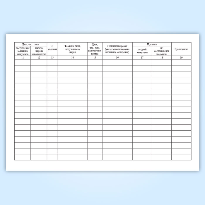 Форма журнала учета эвакуации инфекционных больных форма 349/у, утверждена Приказом Минздрава СССР №1030 «Об утверждении форм первичной медицинской документации учреждений здравоохранения» от 4 октября 1980 г.