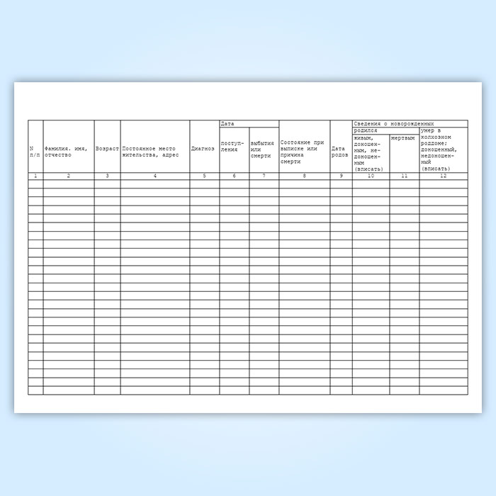 Журнал учета приема больных и рожениц в стационар фельдшерско-акушерского пункта, колхозного родильного дома (Форма 098/у) имеет графы: