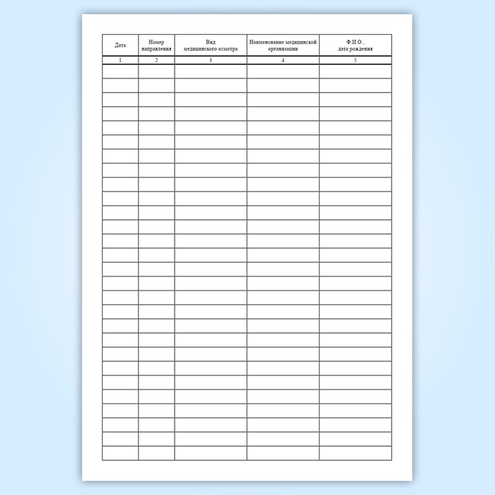 Журнал регистрации выдачи направлений на медицинский осмотр