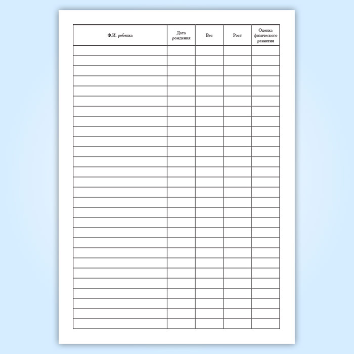 Журнал антропометрических измерений имеет графы: