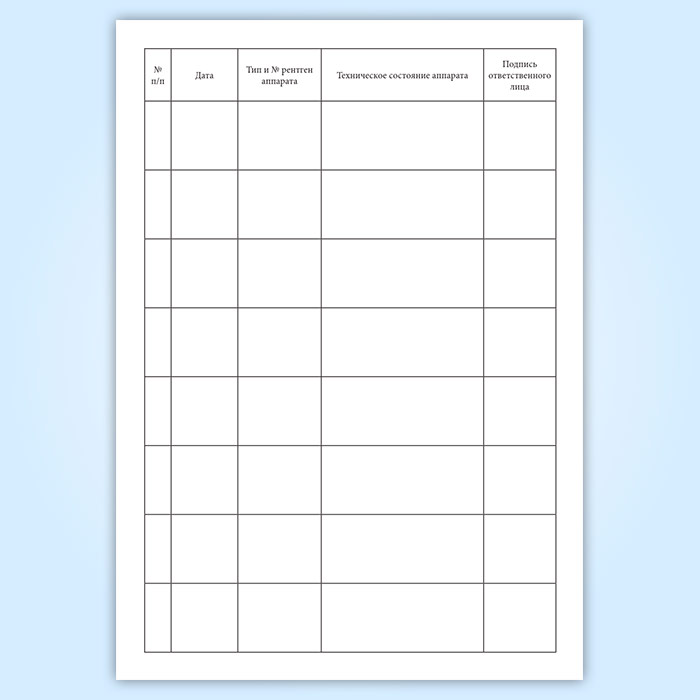 См. также: Журнал технического осмотра рентгеновских аппаратов