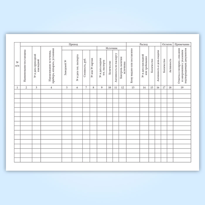 См. также: Приходно-расходный журнал учета источников ионизирующего излучения