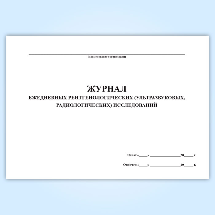 Журнал ежедневных рентгенологических (ультразвуковых, радиологических) исследований ведут в диагностических лабораториях лечебно-профилактических учреждений для регистрации и учета проведенных исследований.