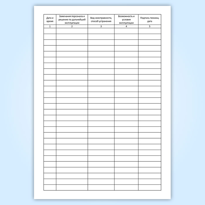 Форма контрольно-технического журнала идентична форме журнала контрольно-технического журнала эксплуатации рентгеновской аппаратуры также определена в Приложении №1 к СанПиН 2.6.1.1192-03.