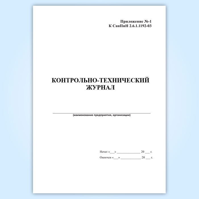 Форма контрольно-технического журнала соответствует Приложению 5 к СанПиН 2.6.1.1192-03. Гигиенические требования к устройству и эксплуатации рентгеновских кабинетов, аппаратов и проведению рентгенологических исследований.
