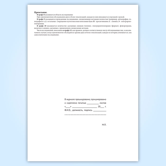 Рекомендаци по ведению журнала записи рентгенологических исследований (Форма 050/у):