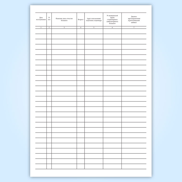 Журнал записи рентгенологических исследований (форма 050/у)