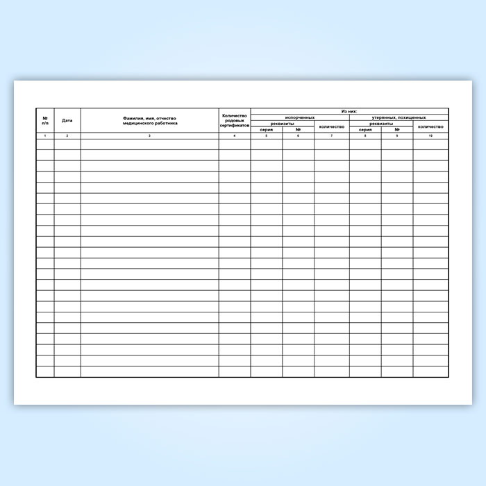 Книга учета испорченных, утерянных, похищенных родовых сертификатов имеет графы: