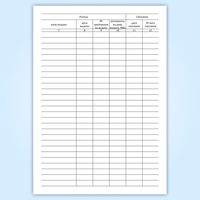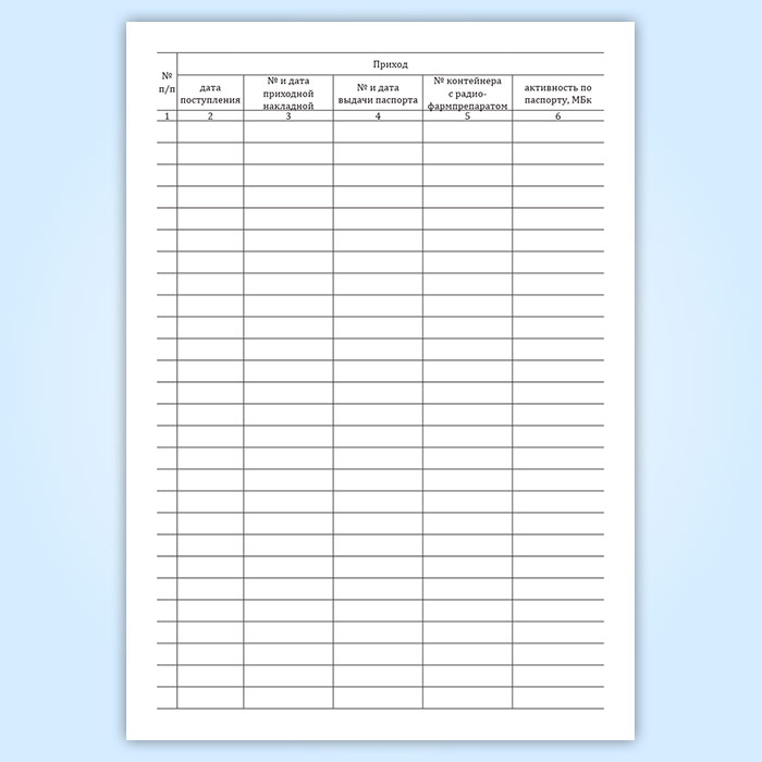 Все поступившие в подразделение радионуклидной терапии готовые РФП должны учитываться в приходно-расходном журнале, который ведется ответственным лицом.