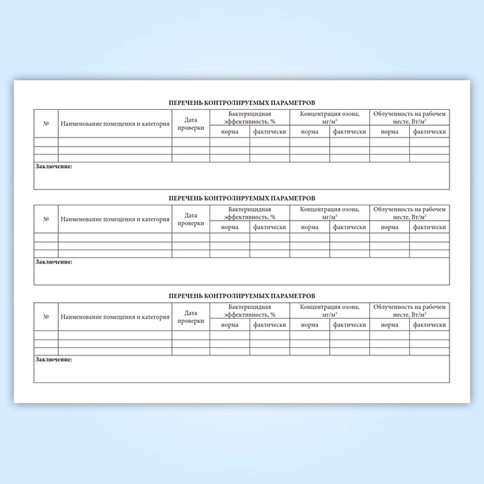 Разделы журнала учета работы ультрафиолетовых облучателей (или других установок) (обсерватор):