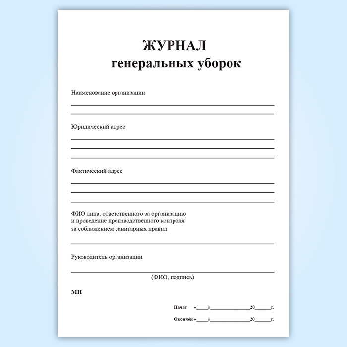Журнал генеральных уборок входит в Комплект журналов для обсерватора.